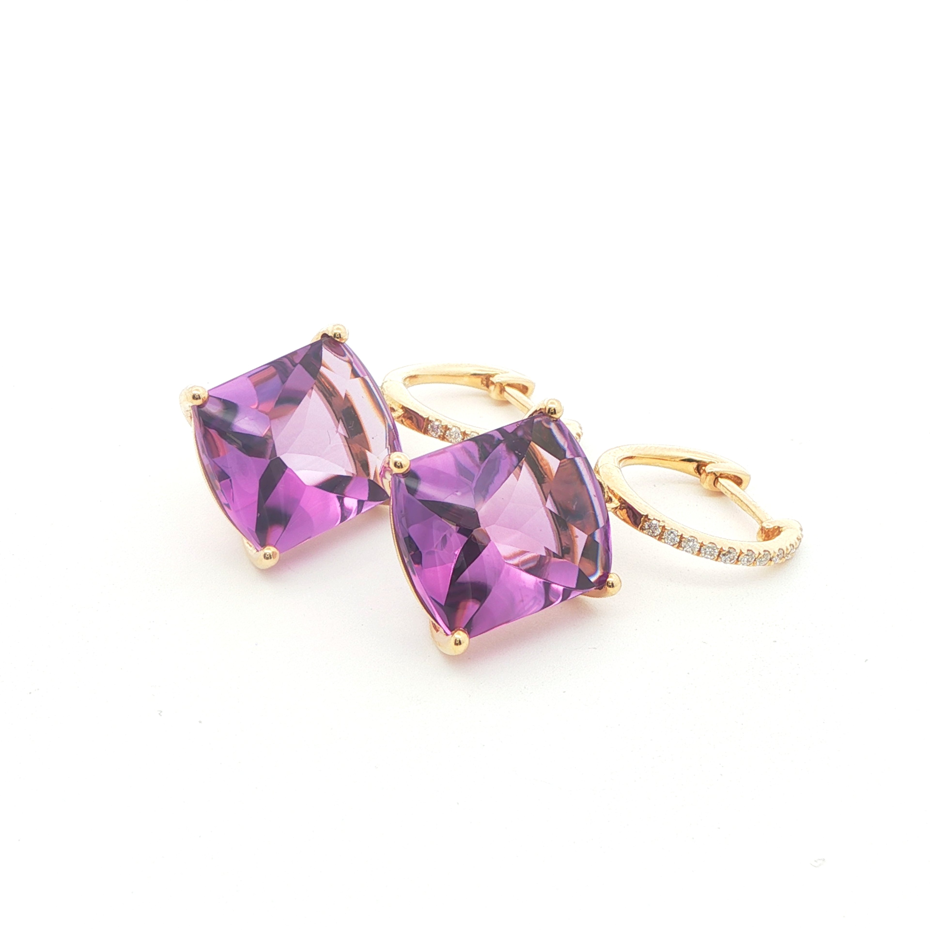 Yellow Gold Dangle Earrings with Square Amethyst