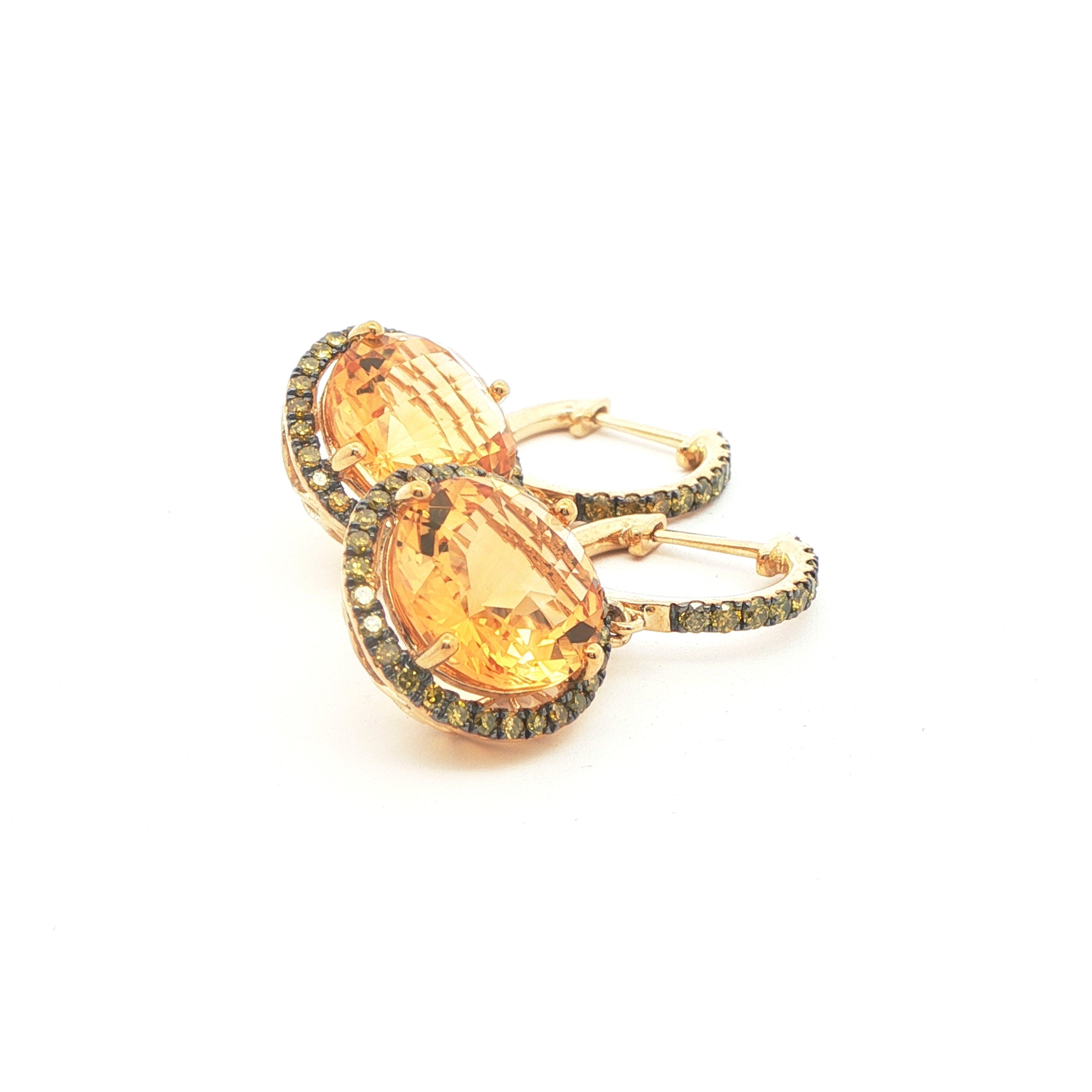Yellow Gold Hoop Earrings with Brilliant-Cut Citrine Gemstones