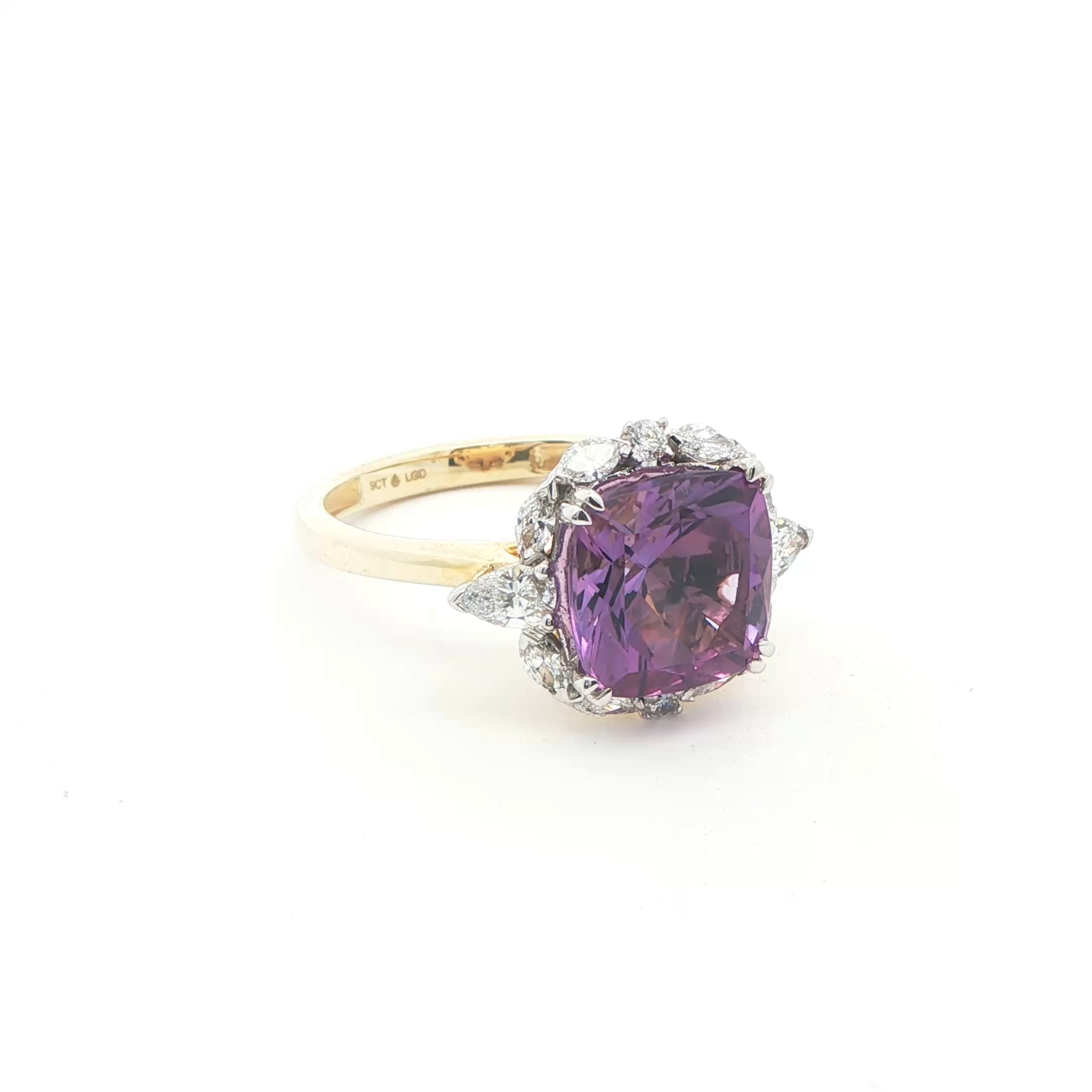 Yellow Gold Cocktail Ring with Cushion Cut Amethyst