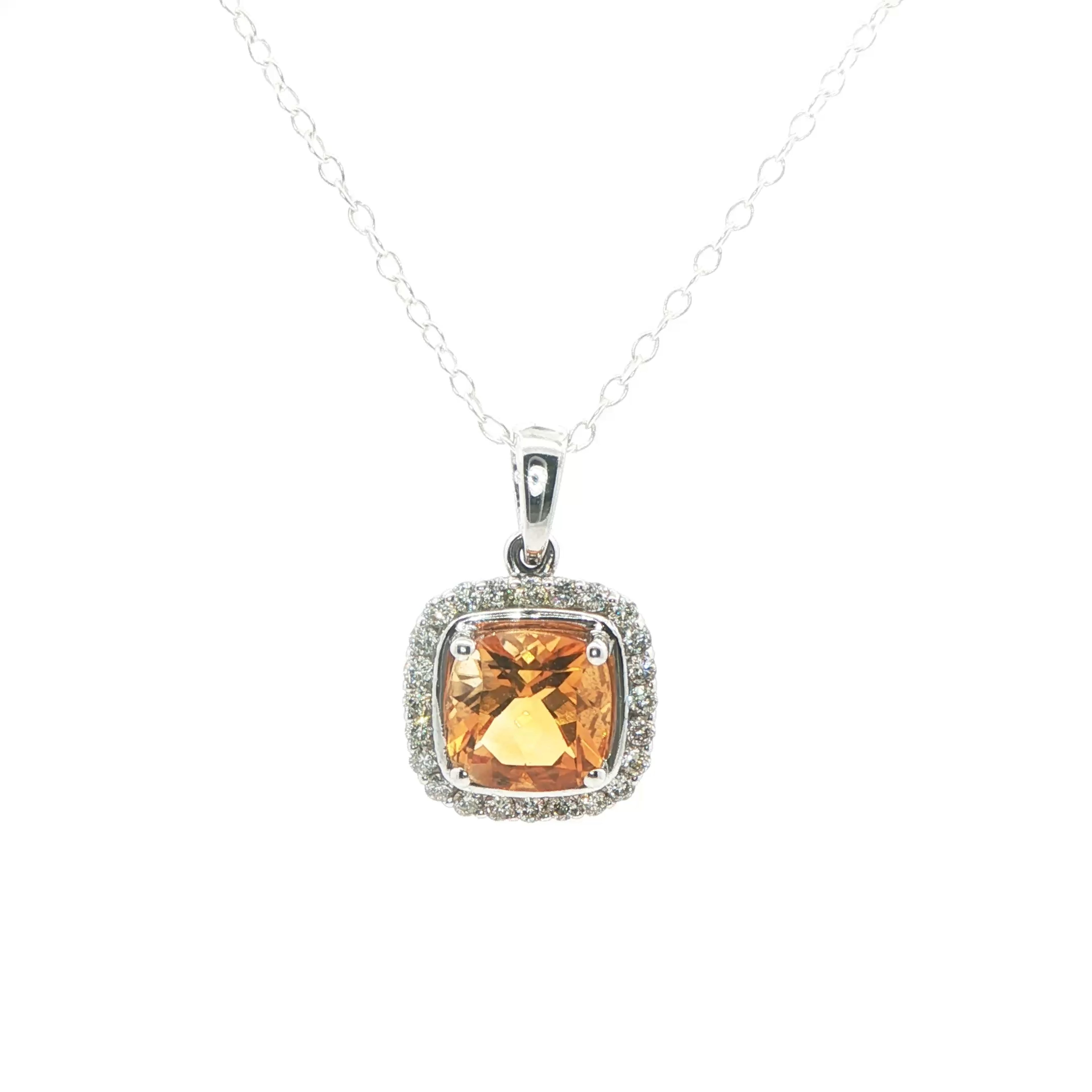White Gold Over Silver Charm Necklace with Cushion Cut Citrine Gemstone